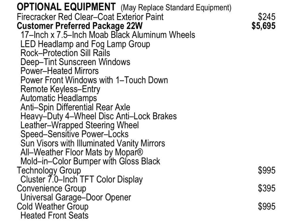 - Wheels: 17" x 7.5" Moab Black Aluminum