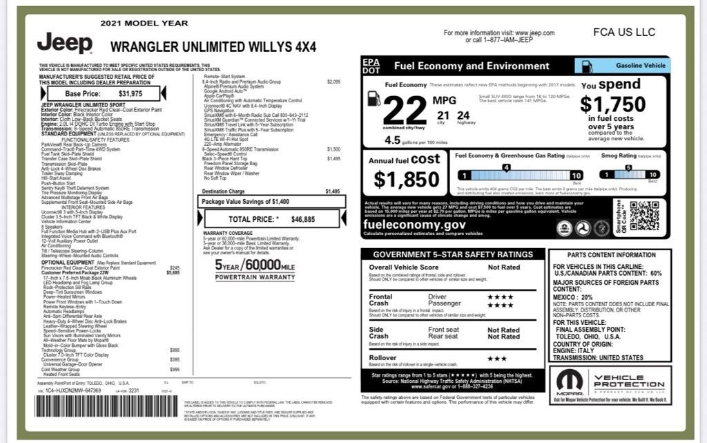 Firecracker Red Clearcoat 2021 Jeep Wrangler Unlimited Willys 4WD 8-Speed Automatic 2.0L I4 DOHC