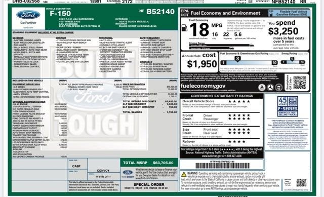 Black Metallic 2022 Ford F-150 XLT 4D SuperCrew 4WD 10-Speed Automatic 5.0L V8