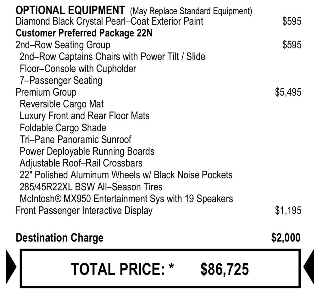 - Wheels: 22" x 9.0" Premium 3 Aluminum (DISC)