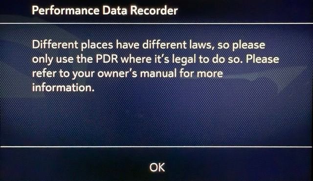 - Performance Mode records performance data: 0 to 60 mph, 1/4-mile speed and elapsed time, as well as 0-to-100-to-0 runs