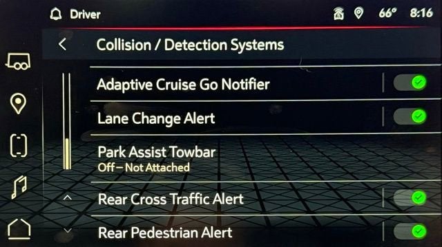 - When Hitch View is in use, automatically applies parking brake when shifting from Reverse to Park