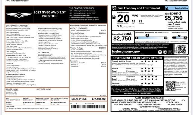 2023 Genesis GV80 NA