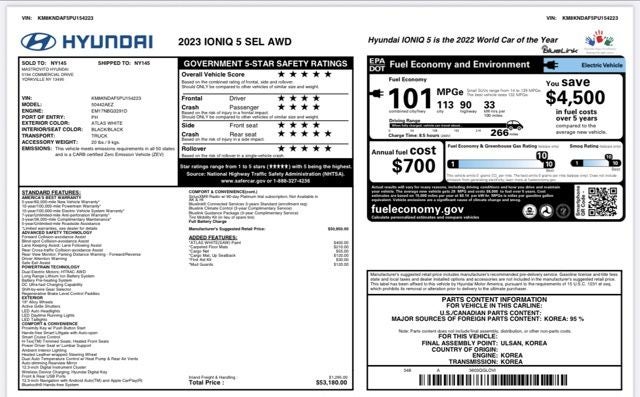 Atlas White 2023 Hyundai IONIQ 5 SEL 4D Sport Utility AWD 1-Speed Automatic Electric Motor 113/90 City/Highway MPG