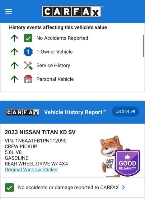 CARFAX One-Owner. Clean CARFAX.Deep Blue Pearl Metallic 2023 Nissan Titan XD SV 4D Crew Cab 4WD 9-Speed Automatic 5.6L V8 DOHC 32V Federal 400hpFamily owned and operated since 1949, Brustolon Buick GMC has made 100% CUSTOMER SATISFACTION OUR PRIORITY! Our staff makes purchasing a PRE-OWNED vehicle an ENJOYABLE experience. Visit Brustolon Buick GMC in Mystic, CT and see for yourself! At Brustolon Buick GMC, our goal is to deliver vehicles that will provide years of reliable use. Every vehicle is fully inspected by our factory trained Service technicians, and reconditioned to factory maintenance specifications. Call the Brustolon Buick GMC Sales Department at 860-415-4738 prompt #1, to speak with a member of our team to schedule your test drive today!