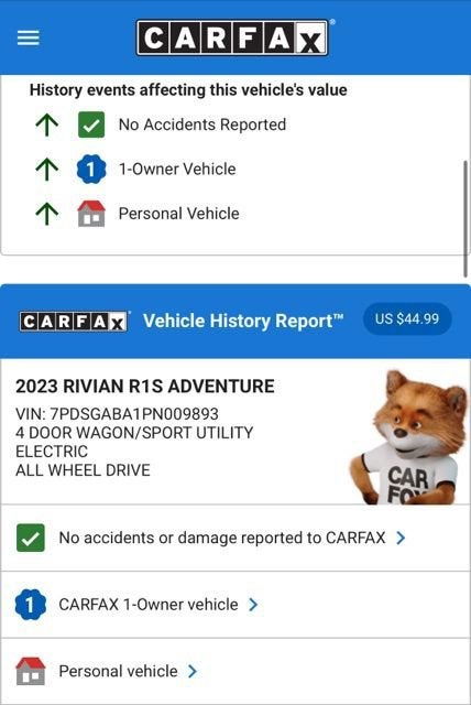 Priced below KBB Fair Purchase Price! Odometer is 872 miles below market average! CARFAX One-Owner. Clean CARFAX.LA Silver 2023 Rivian R1S Adventure 4D Sport Utility AWD 1-Speed Automatic Electric ZEVFamily owned and operated since 1949, Brustolon Buick GMC has made 100% CUSTOMER SATISFACTION OUR PRIORITY! Our staff makes purchasing a PRE-OWNED vehicle an ENJOYABLE experience. Visit Brustolon Buick GMC in Mystic, CT and see for yourself! At Brustolon Buick GMC, our goal is to deliver vehicles that will provide years of reliable use. Every vehicle is fully inspected by our factory trained Service technicians, and reconditioned to factory maintenance specifications. Call the Brustolon Buick GMC Sales Department at 860-415-4738 prompt #1, to speak with a member of our team to schedule your test drive today!
