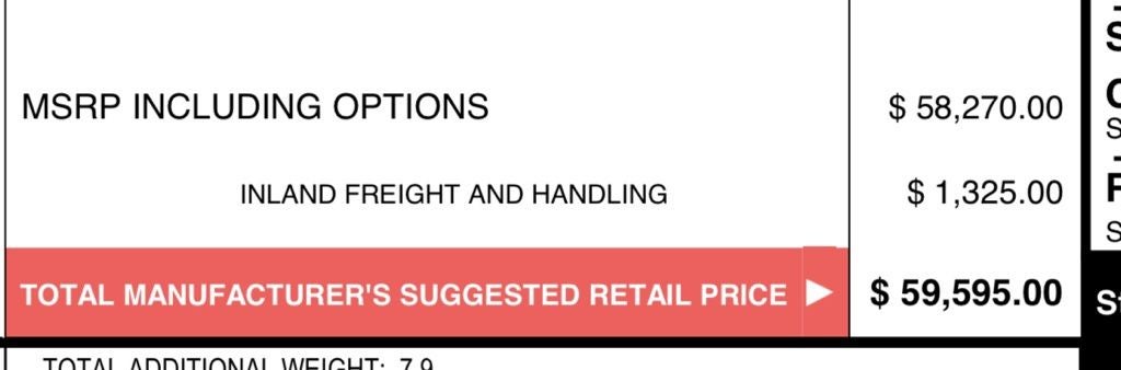 The Manufacturer's Suggested Retail Price excludes tax, title, license, dealer fees and optional equipment. Dealer sets final price.