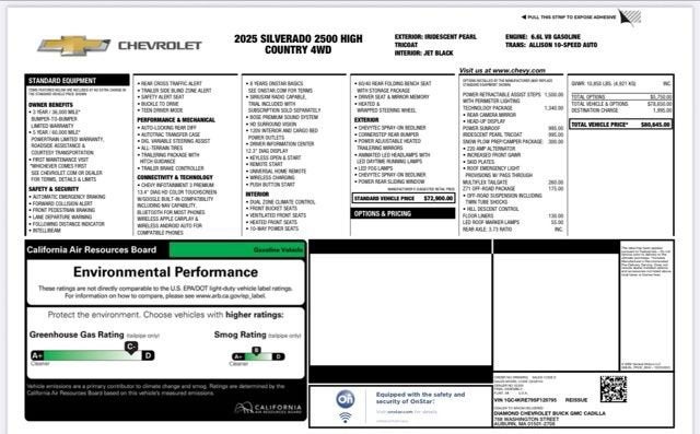 Iridescent Pearl Tricoat 2025 Chevrolet Silverado 2500HD High Country 4D Crew Cab 4WD 10-Speed Automatic 6.6L V8
