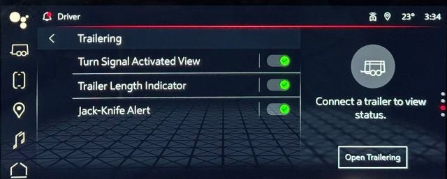 - When driving, lets you check the trailer using Rear Vision Camera view