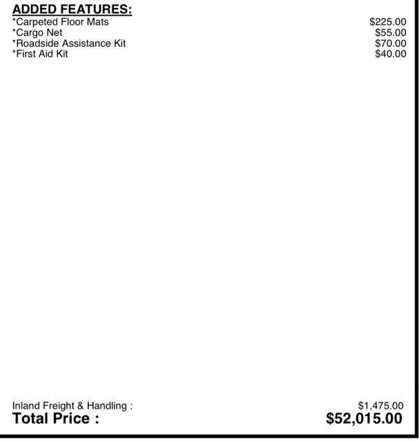 The Manufacturer's Suggested Retail Price excludes tax, title, license, dealer fees and optional equipment. Dealer sets final price.